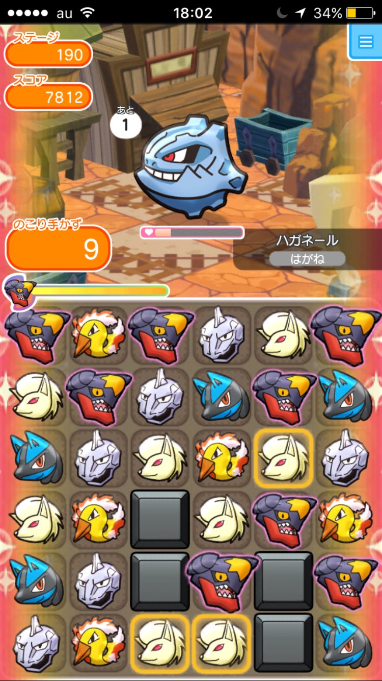 攻略メモ ステージ1 中央2列が岩化し、ポケモンの一部がフカマルになってスタート。 中央2列を消すとブロックかフィオネが落ちてくる。 メガガブリアスは3ターンに一度、オジャマで3マスを岩化or4マスをブロック化する (初ターン除く) 。 ステージ前 なみゲコはサンダー戦の難易度が高い 中央いくならスピンカメとかアマージョとかのが安定するよ アマはアマでユナイト不発事故あるから個人的にはカメ推し ゲコジュナとかの柔いのは轢き殺せるしアローもぶち殺せるで最強なんすよね 引用元:http 今回は、ポケモンサファリのガブリアスを攻略していきます。 ステージの特徴 ・手数は15 ・3匹限定ステージ ・鉄ブロックがしばらく降ってくる スタート時のオジャマ ・鉄ブロックが12個 バトル中のオジャマ 3ターン毎に ・鉄ブロックを3つ出 ポケとる